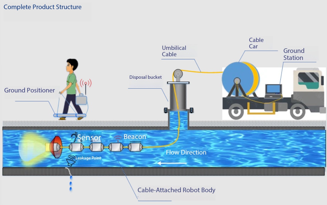 The system consists of the detector body with built-in video, sound, positioning and other modules, the umbilical cable responsible for power supply, signal transmission, release and recovery, the transceiver bucket, the puller, the ground control station and other components. In order to be suitable for different application scenarios, our company has developed a series of product series