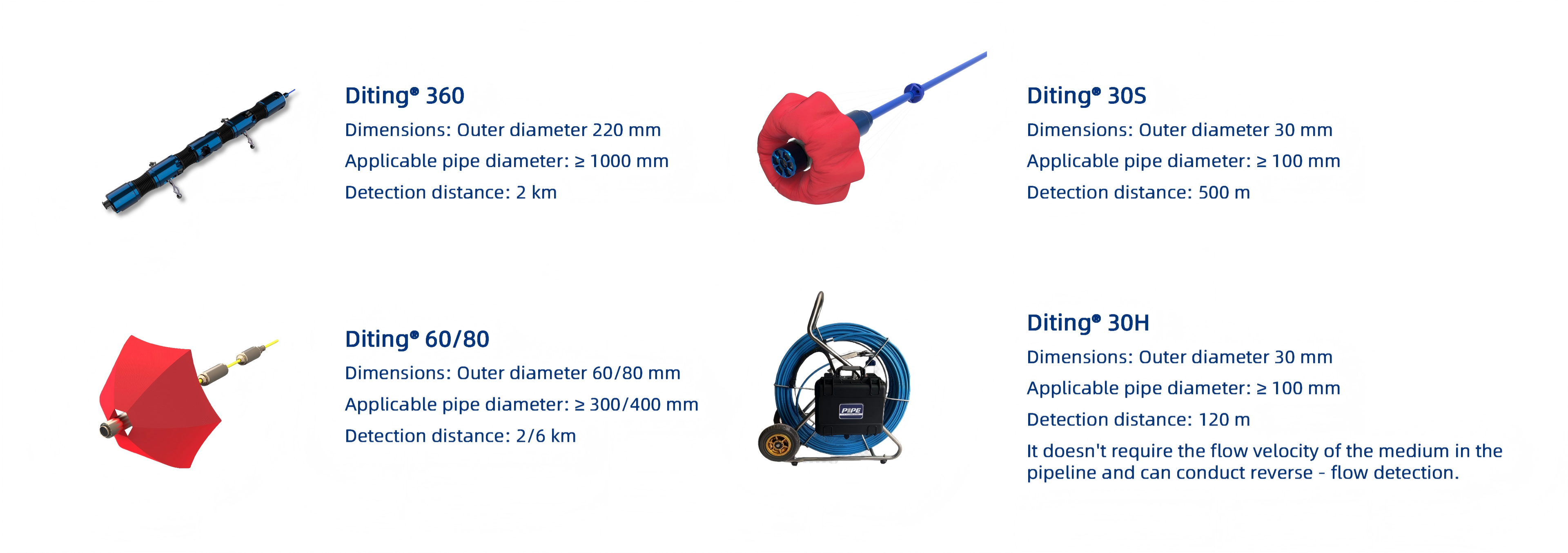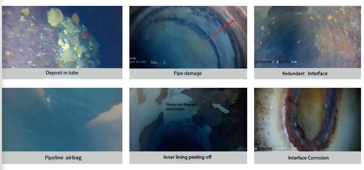 High-sensitivity hydrophones and high-definition camera units are used to detect various abnormal conditions such as small leaks, damage, nodules, air pockets, and impurity accumulation, and precise positioning of abnormal points is achieved through the ground beacon system. Can also be used for pipeline route reconstruction jobs.