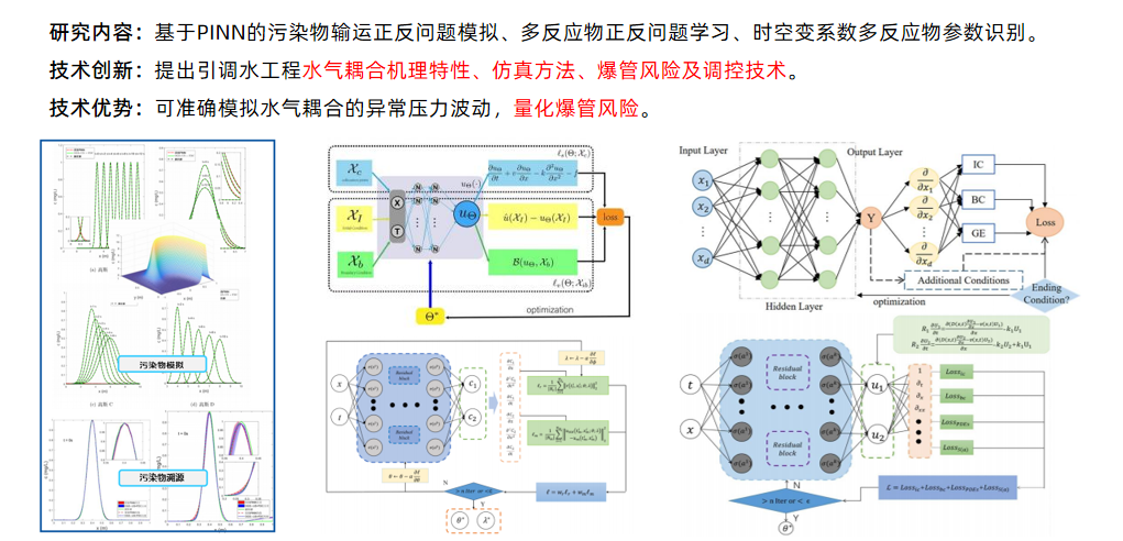 构建了基于物理神经网络(PINN)的污染物输运正反问题模拟,多反应物正反问题分析,时空变系数多反应物参数识别。